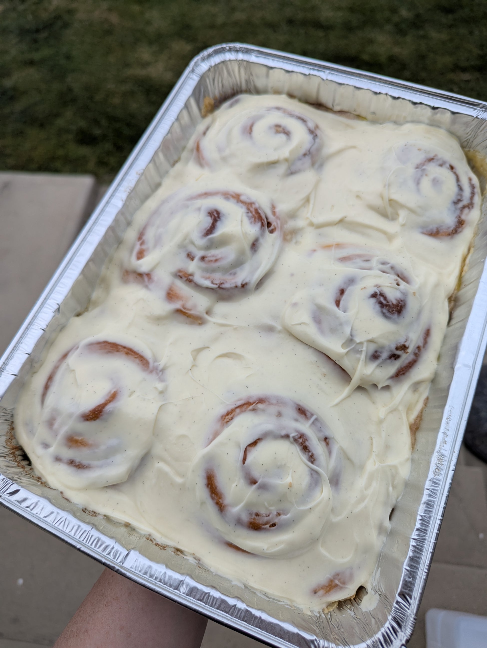 Made from scratch and swirled with love, these cinnamon rolls are soft, buttery, and slathered with luscious cream cheese frosting. They're baked fresh and meant to be devoured warm — whether you're treating yourself or feeding a small, grateful crowd.